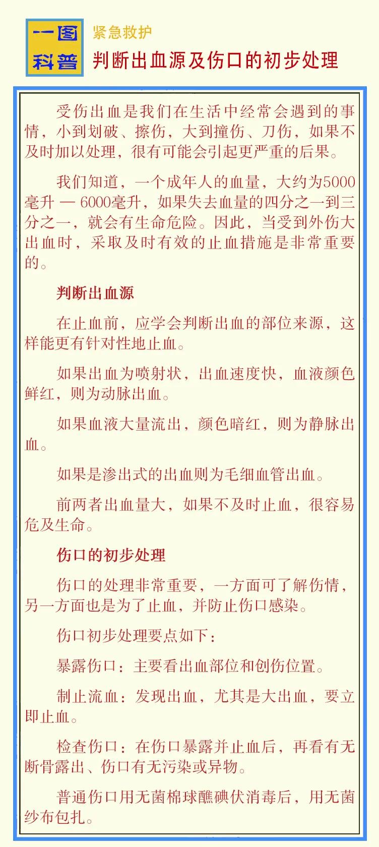 一图科普 | 紧急救护 之 判断出血源及伤口的初步处理