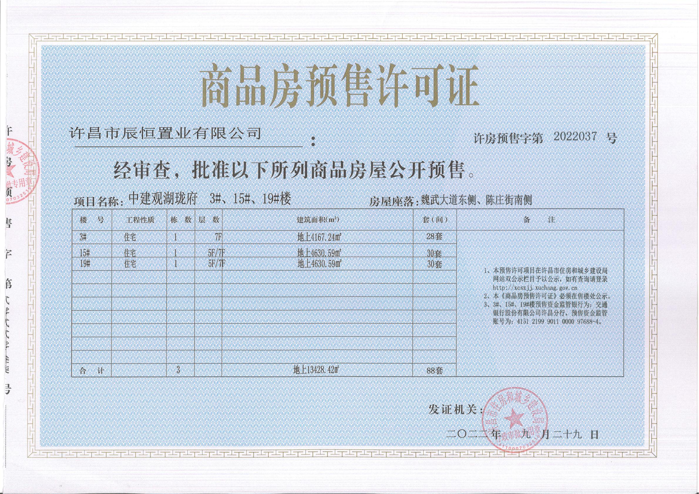 商品房预售许可证2022032—2022037号公示